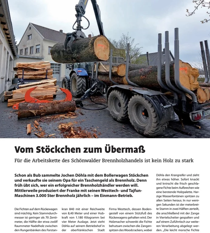 Im April diesen Jahres durften wir Herrn Riemann vom Forstfachverlag bei uns im Betrieb begrüßen. Den daraus entstandenen Bericht können Sie hier downloaden.